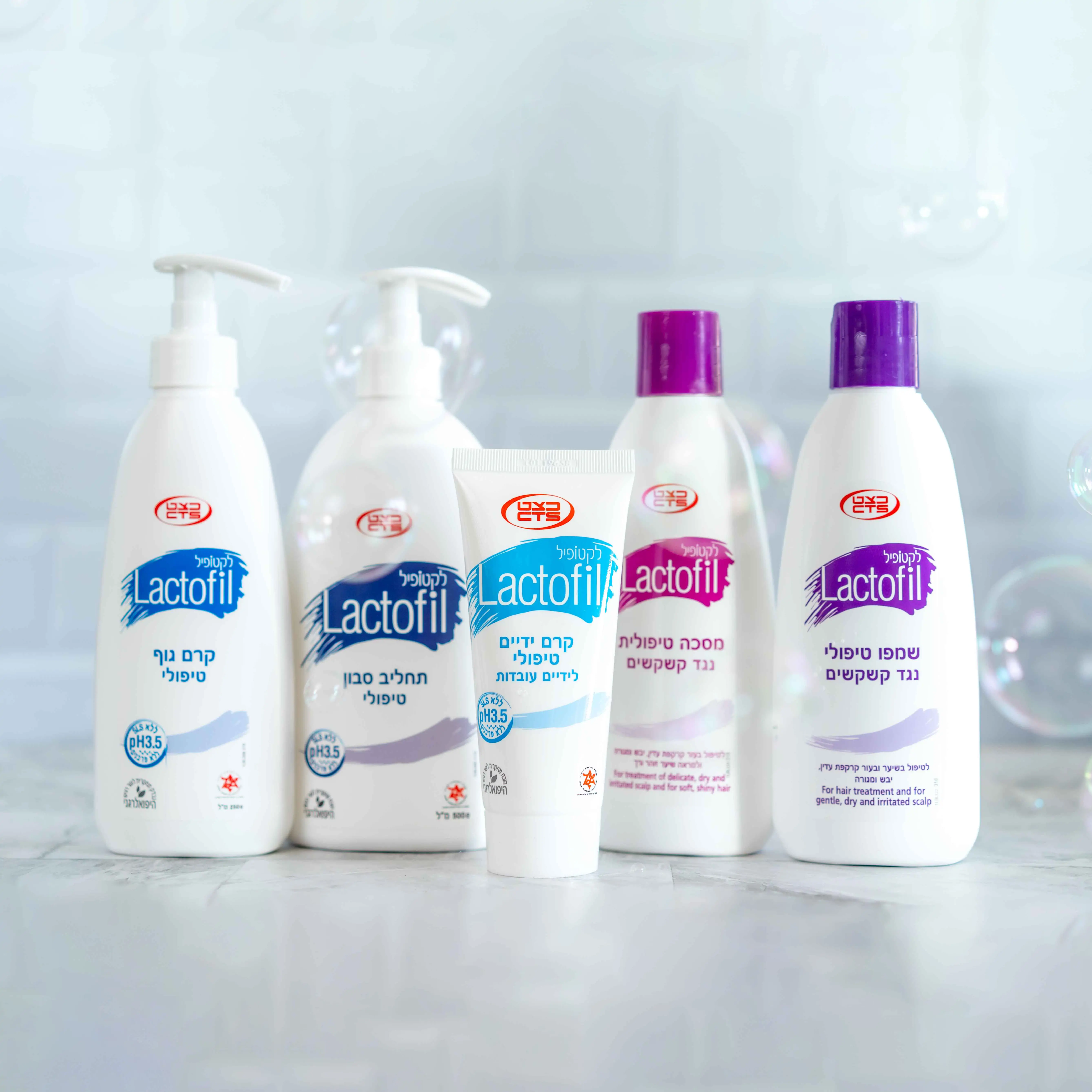 תחליב סבון טיפולי, תחליב גוף טיפולי, קרם ידיים טיפולי, שמפו ומסכה לטיפול נגד קשקשים.